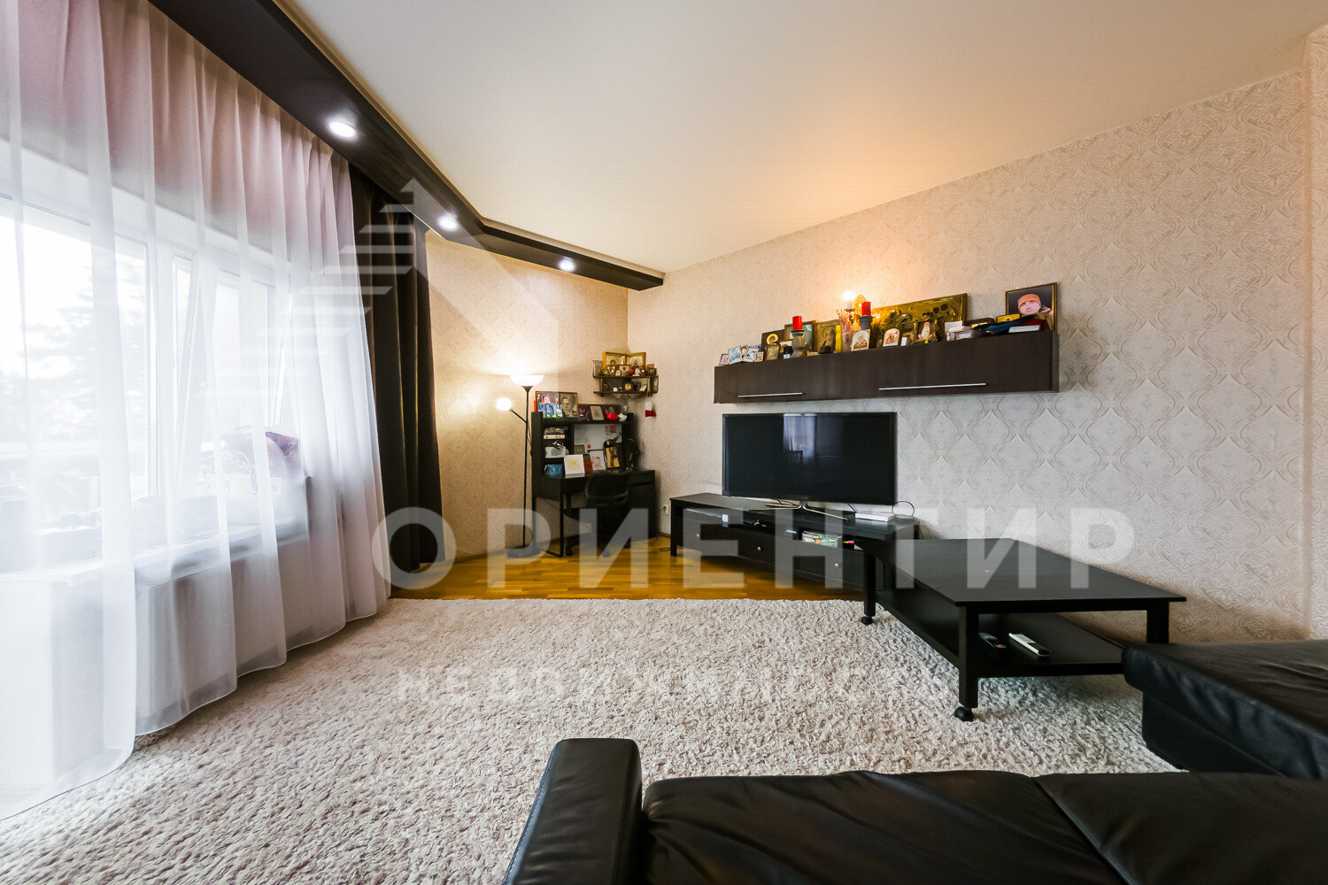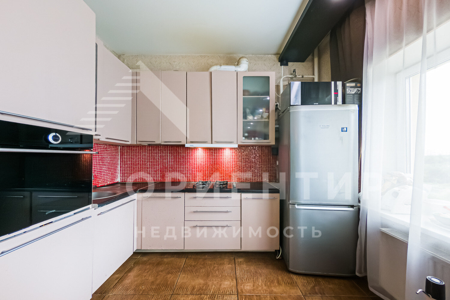 Окна квартиры выходят на тихую зеленую зону, в гостиной большой застекленный балкон, полк- паркет / плитка.