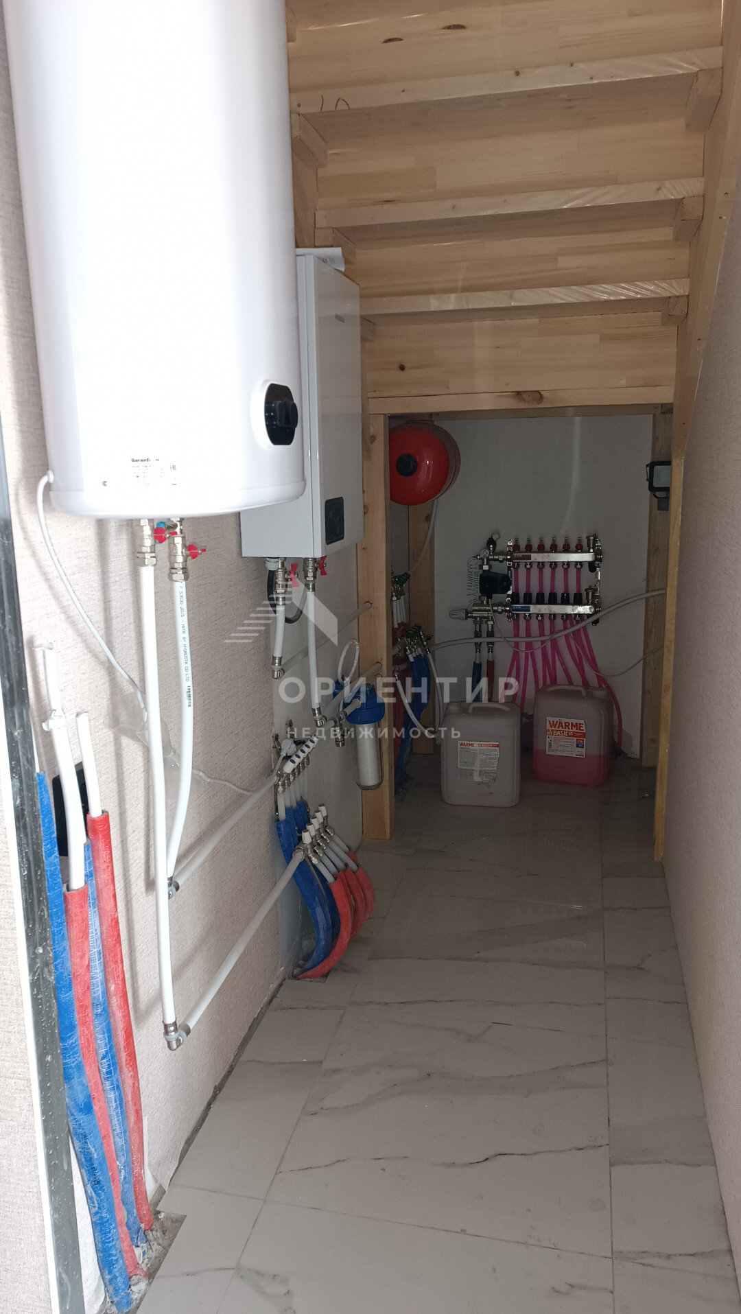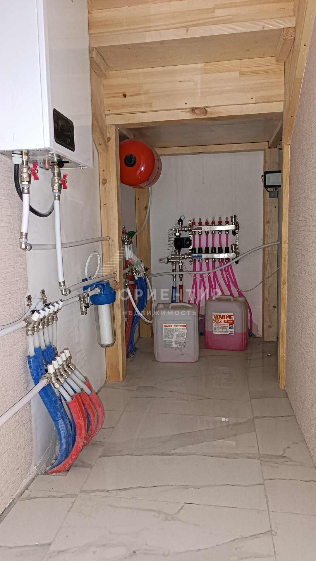 Материалы строительства: Стены и перегородки выполнены из газоблока + утеплённый фасад (утеплитель 100 мм) + штукатурка "Короед", армировка блока каждые 3 ряда, утеплённый армопояс. Меж-этажные железобетонные перекрытия (плиты). Фундамент залит плитой 400мм. Крыша из металлочерепицы, установлены снегадержатели, водостоки, вентиляция. Хорошие пластиковые трёх-профильные окна толщиной 75 мм. Входная стальная сейф-дверь с терморазрывом. Скважина в доме с питьевой водой и автономная Канализация (септик). Электричество 15кВт 380В. Газопровод идёт по улице!