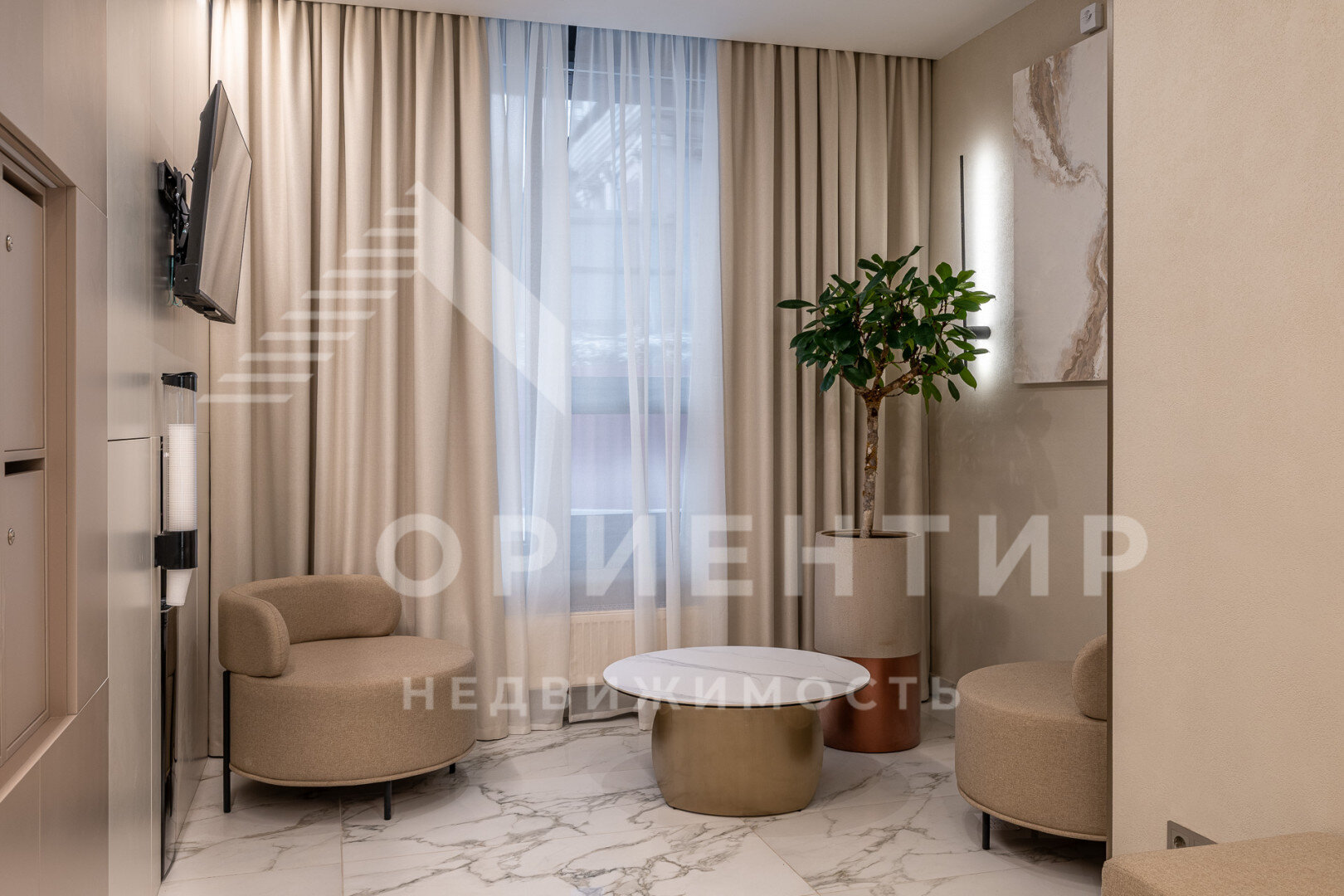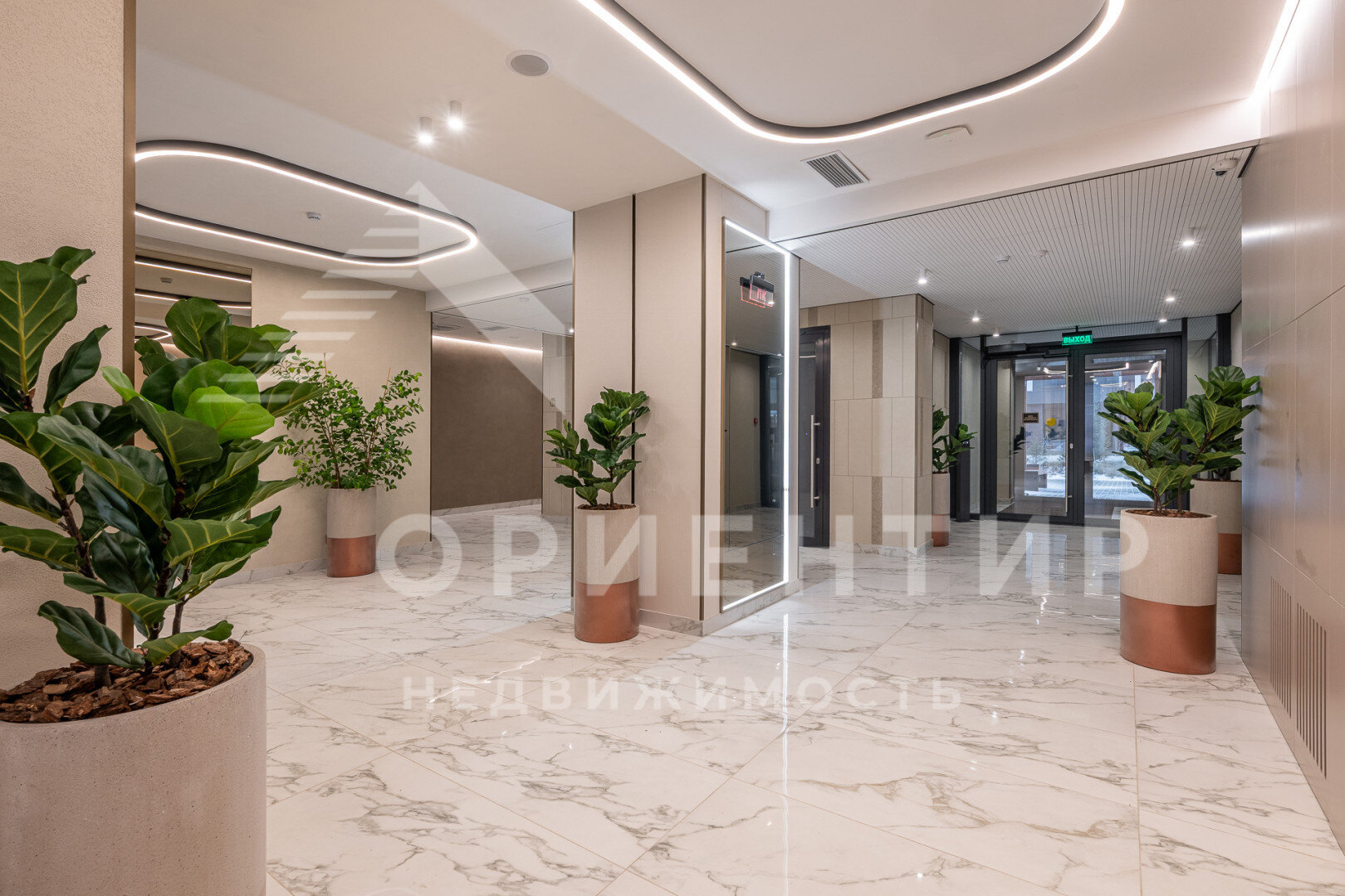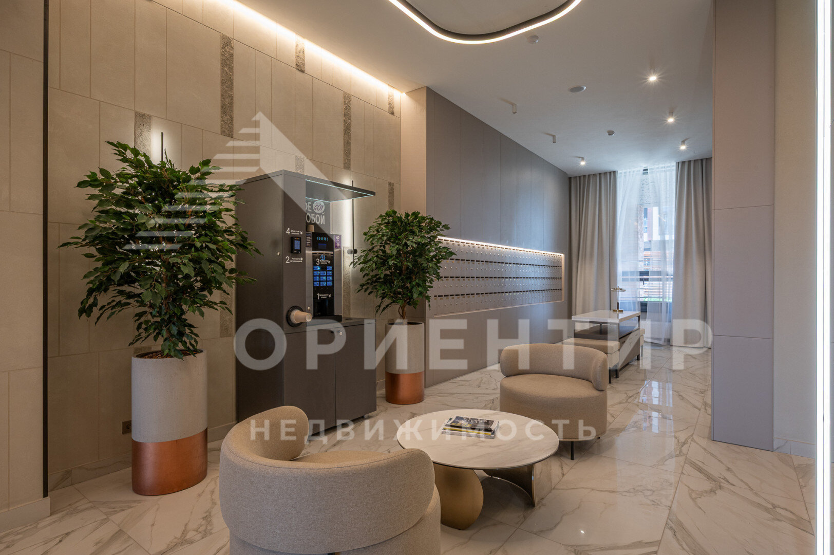 В жилом комплексе единая входная группа, спроектированная по аналогии с пятизвёздочным отелем, где располагается служба ресепшен, которая помогает решать бытовые вопросы резидентов. Из центрального лобби можно пройти в ресторан и подняться в фитнес-центр.