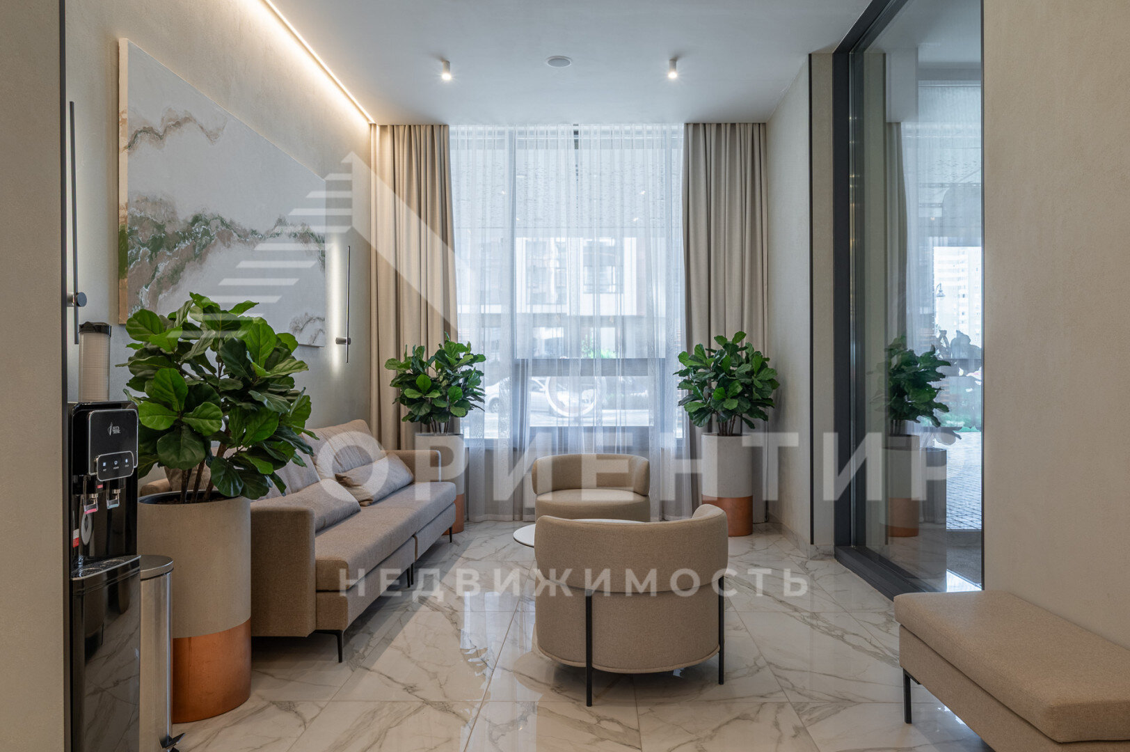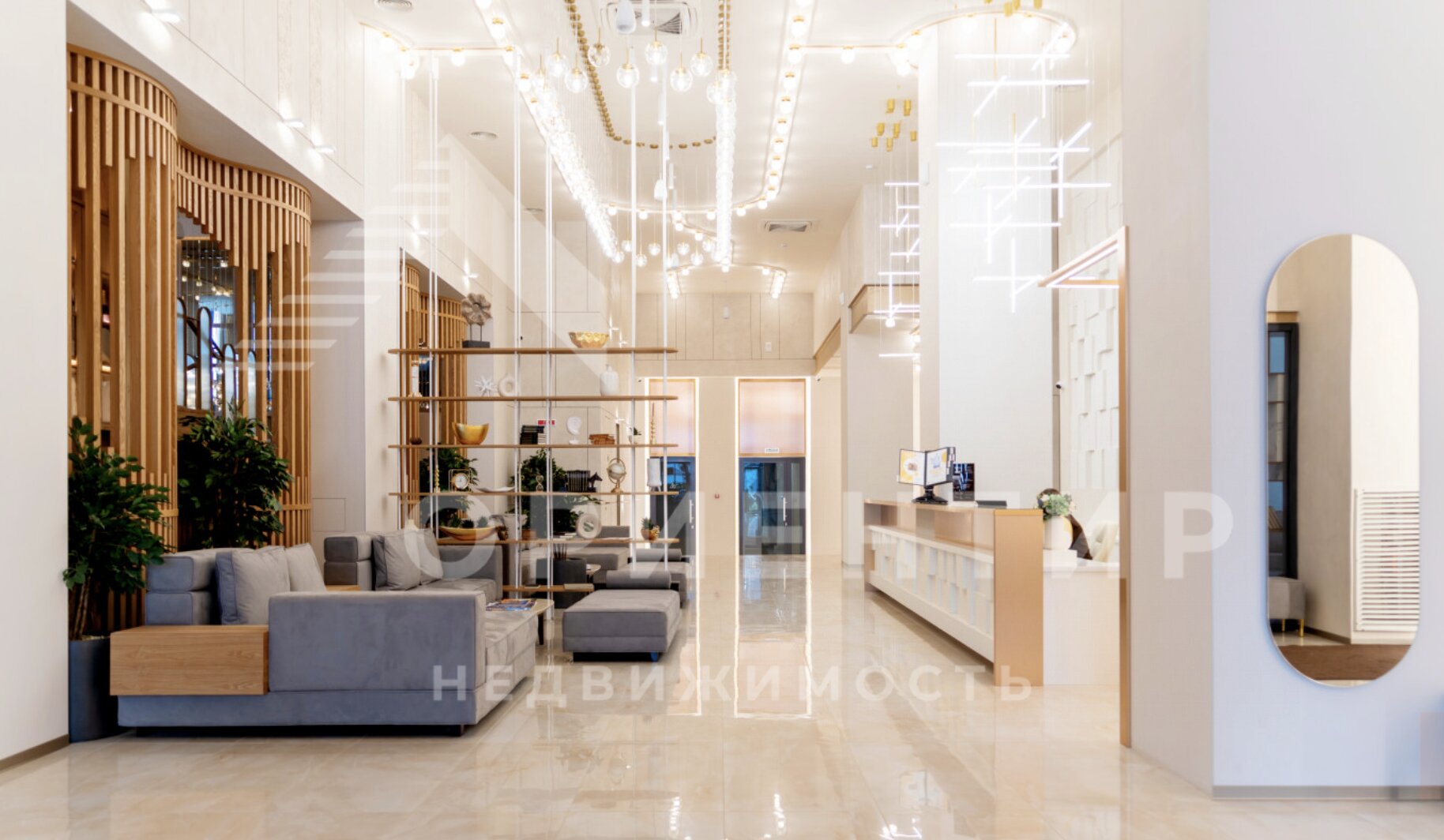 В жилом комплексе единая входная группа, спроектированная по аналогии с пятизвёздочным отелем, где располагается служба ресепшен, которая помогает решать бытовые вопросы резидентов. Из центрального лобби можно пройти в ресторан и подняться в фитнес-центр.