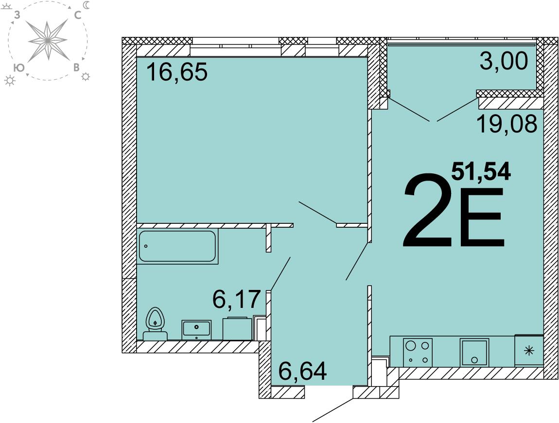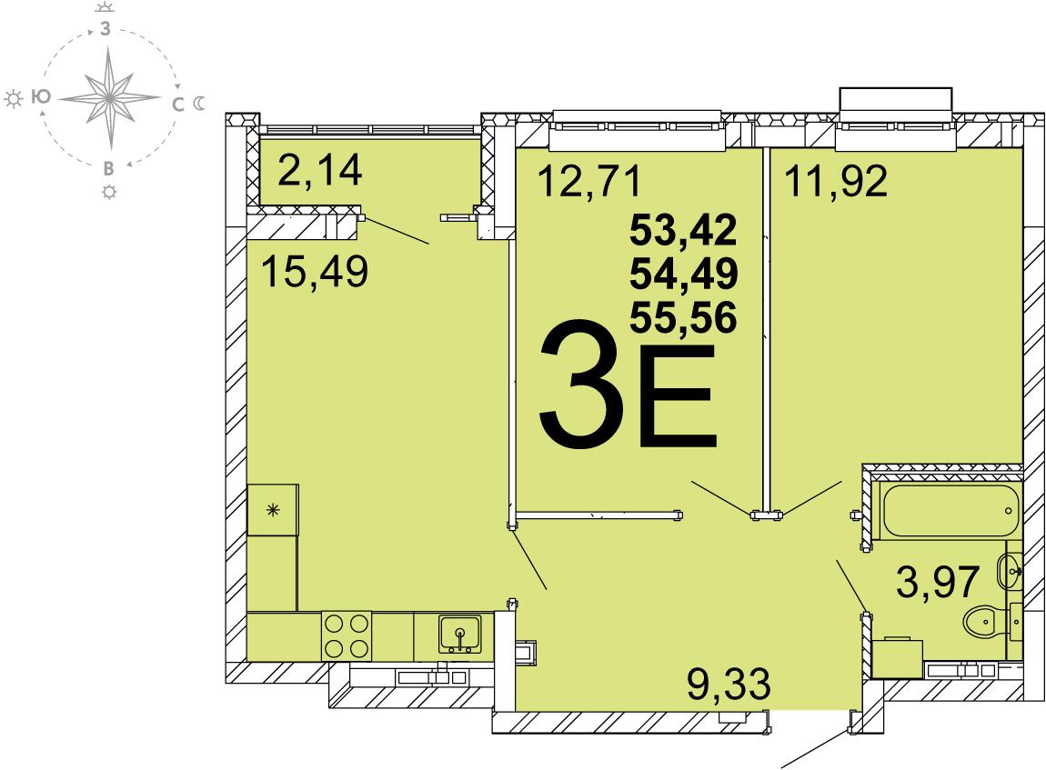 2-комнатная | 53.2 м2 | 7 656 373 | постр. | 12 |