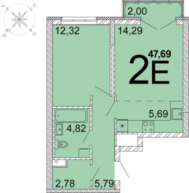 1-комнатная | 45.8 м2 | 6 999 614 | 2024 I | 26 |
