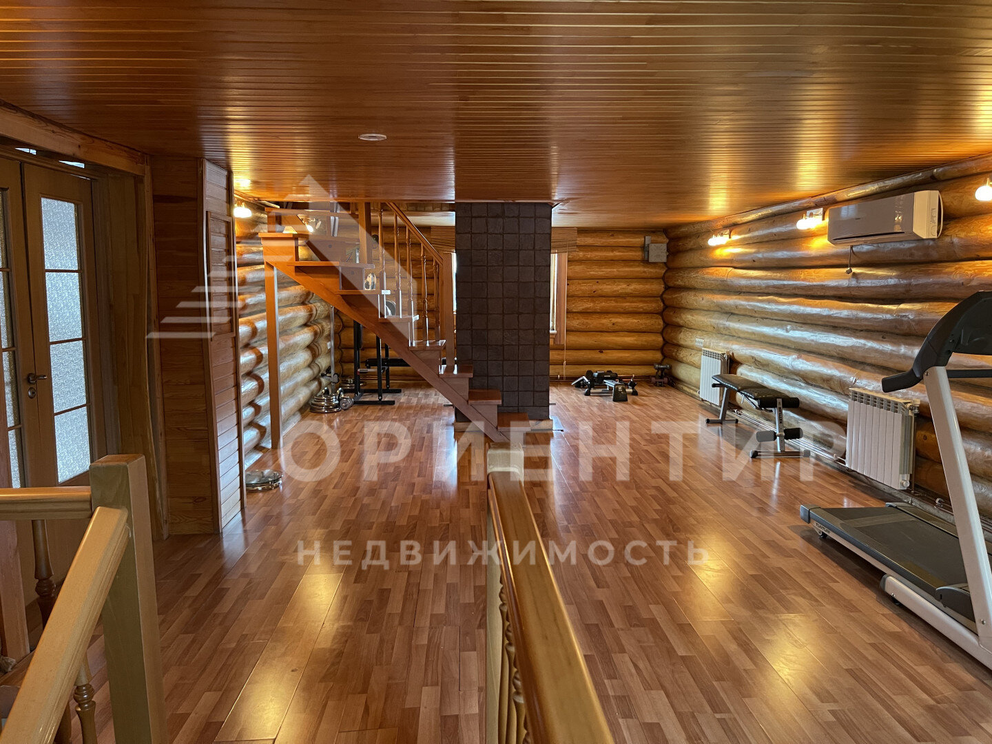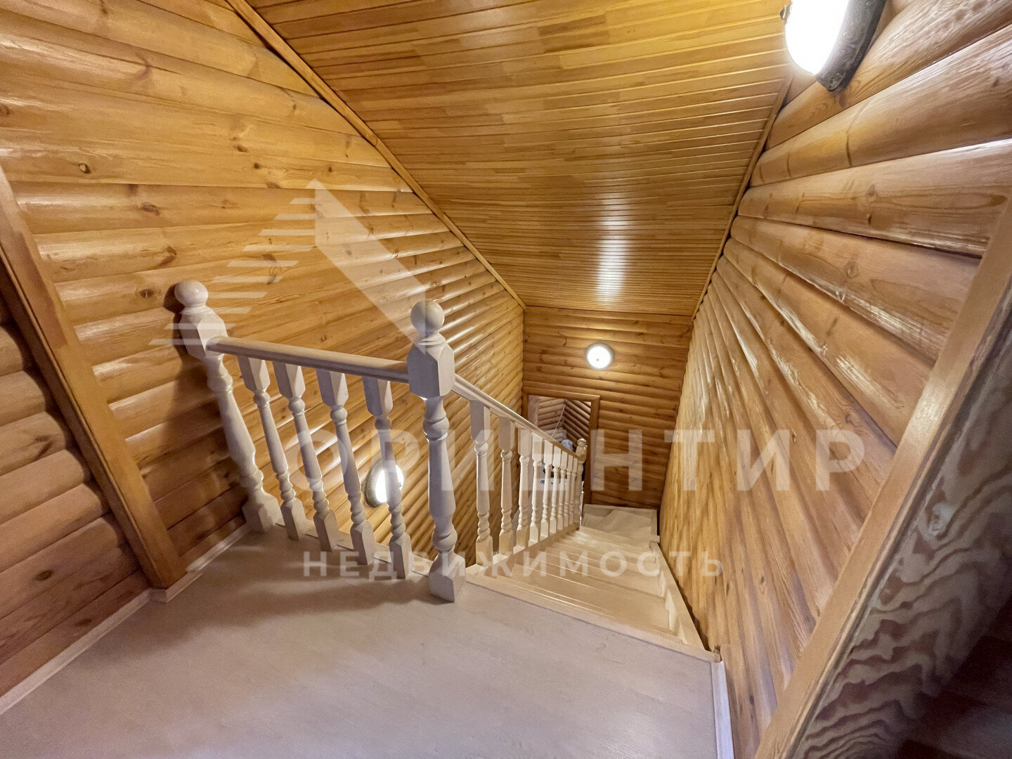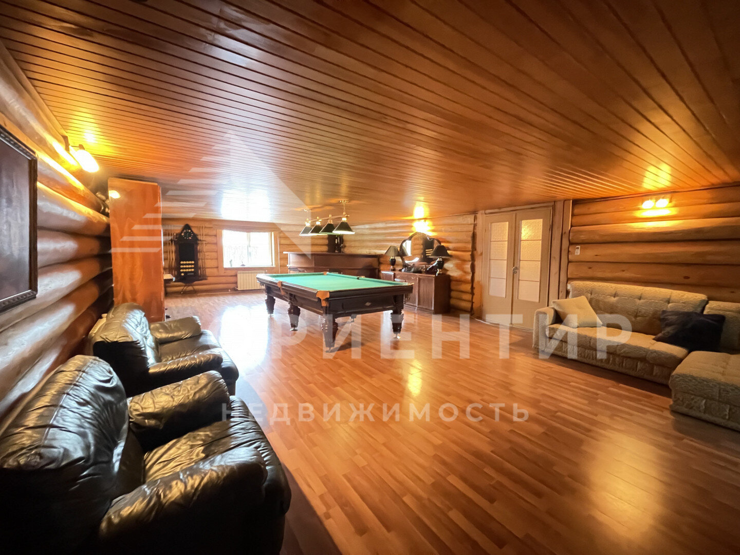 Достойный восхищения дом из бревна разделен на две части : первая часть дома это 3-х этажный банный комплекс с биллиардной и вторая часть дома - 2-х этажный жилой дом.