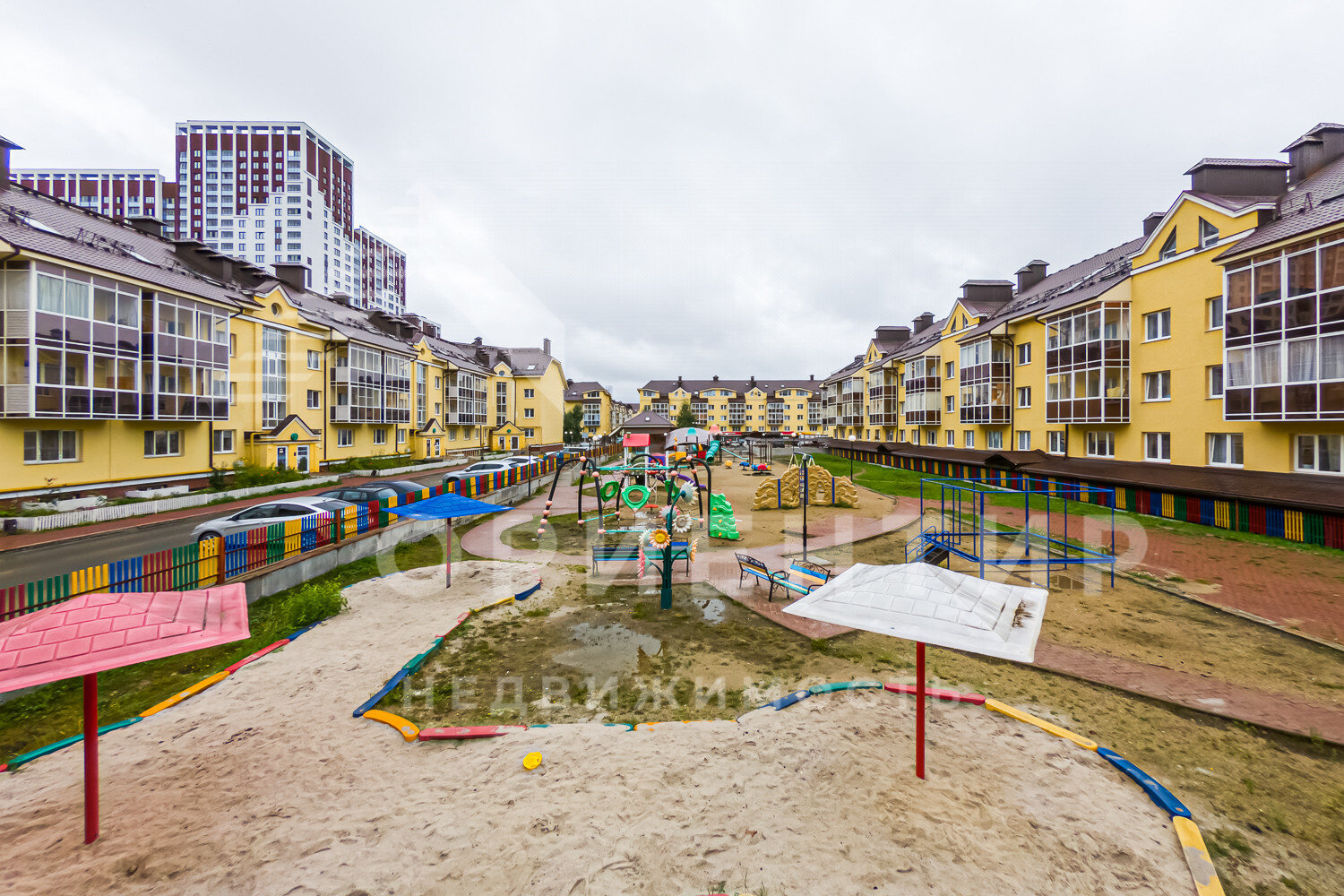 Большой , закрытый безопасный двор с хорошей огороженной площадкой для детей и бесплатными местами парковки для личного транспорта.