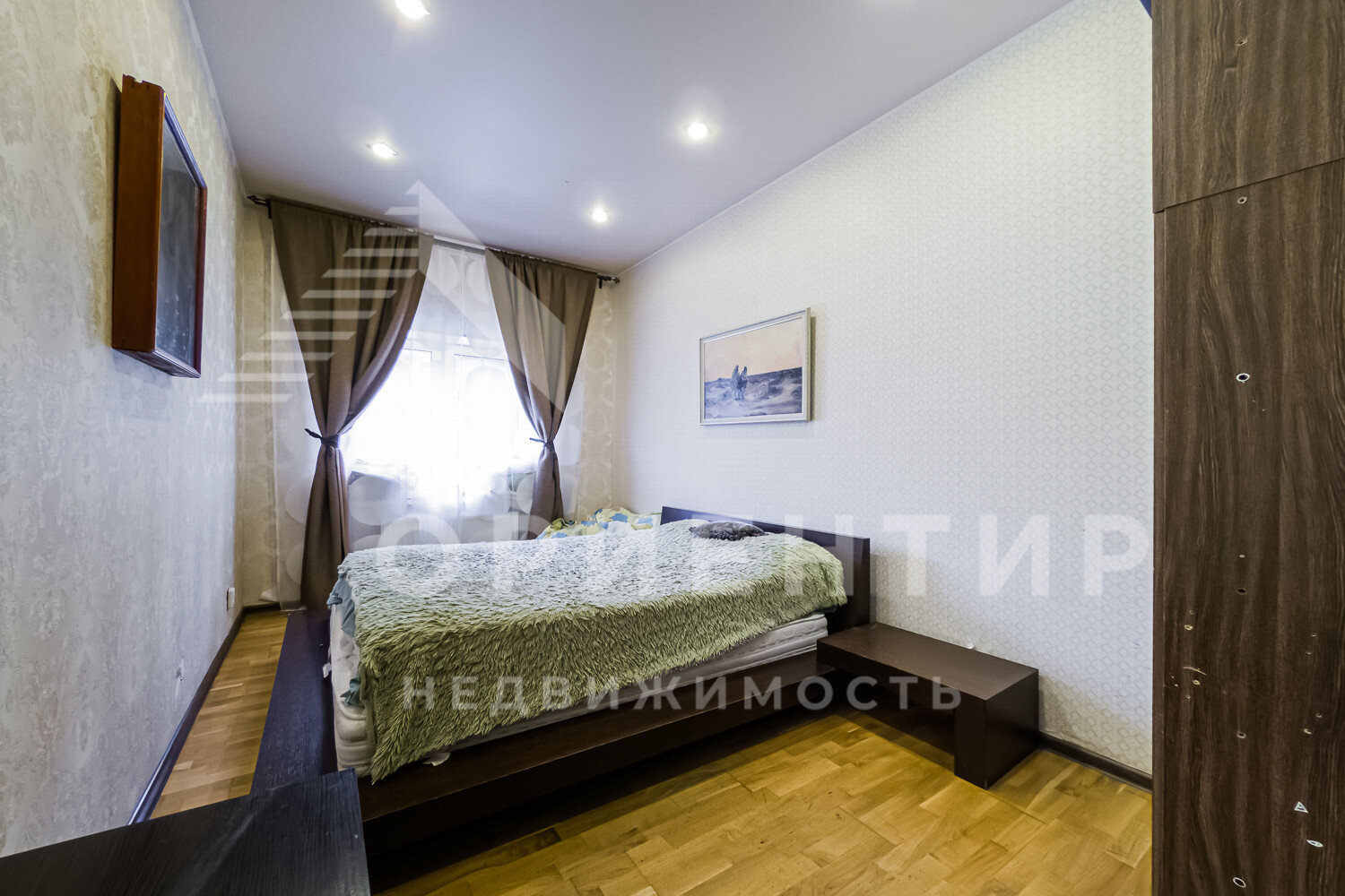 Окна квартиры выходят на тихую зеленую зону, в гостиной большой застекленный балкон, полк- паркет / плитка.